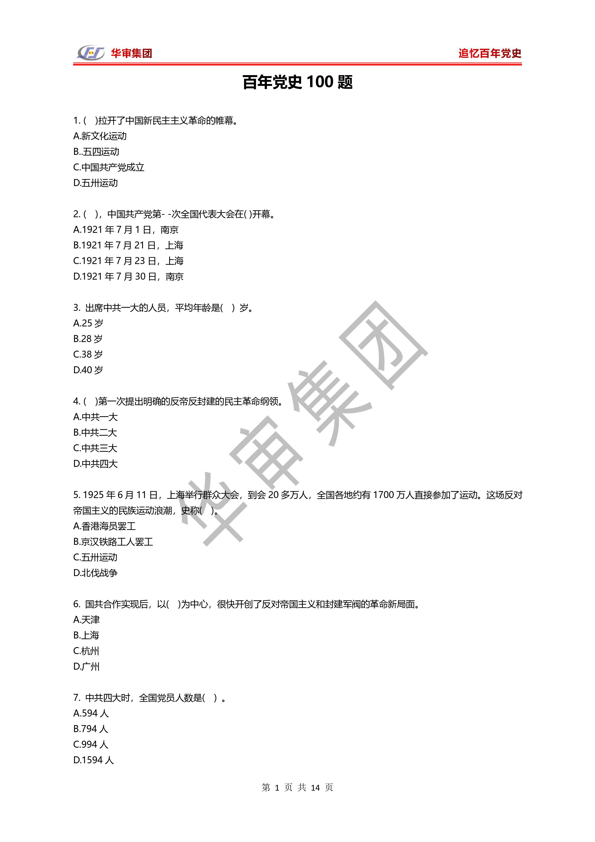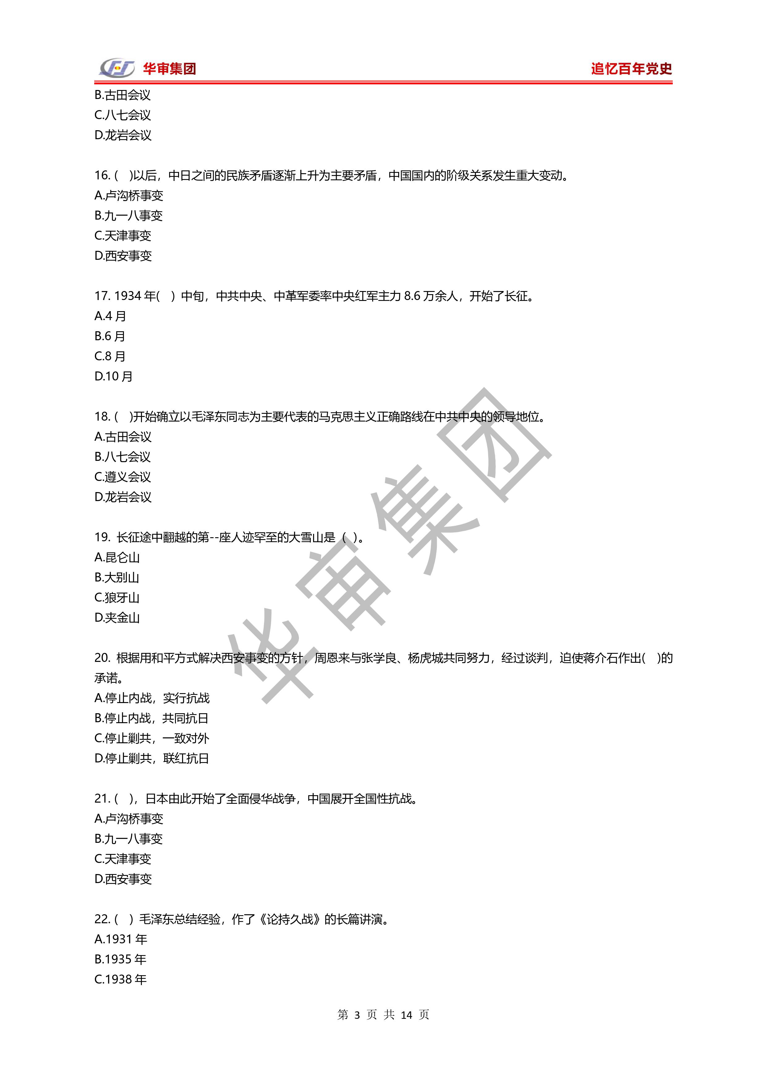 “追憶百年黨史”知識問答